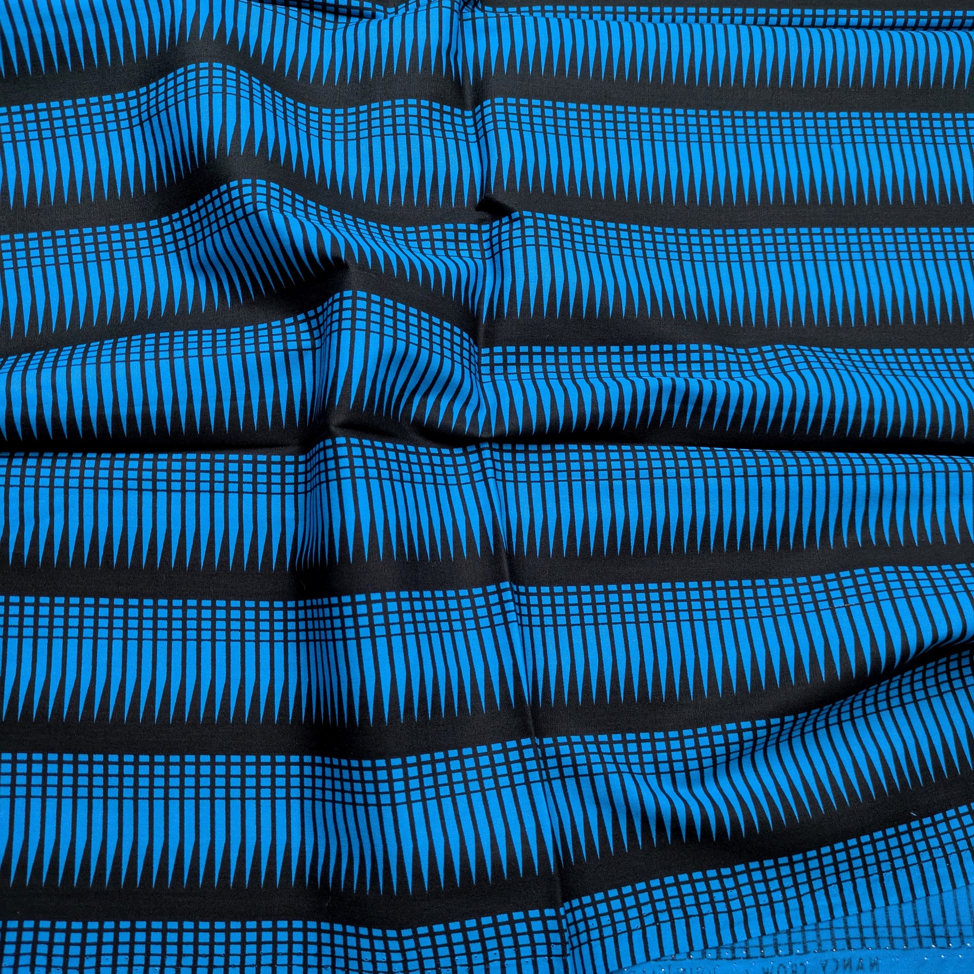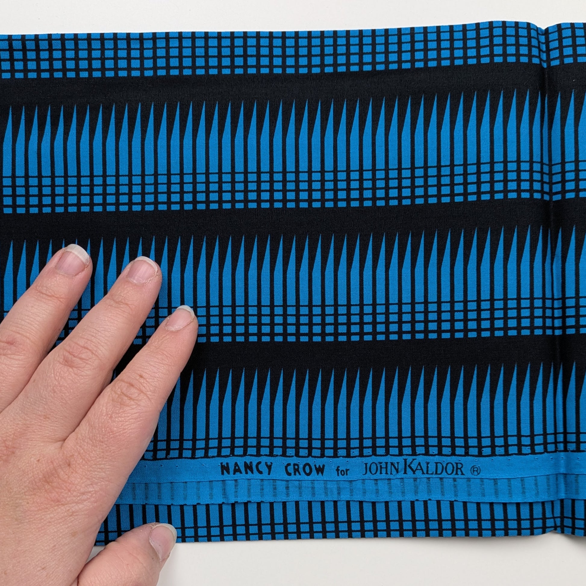 A half yard cut of quilting cotton (19" long and 43" wide), this bold blue and black print could become two bandanas for you and your best friend, a totally tubular five panel hat, or a bodacious fanny pack. The hand picture is to ensure color accuracy :)