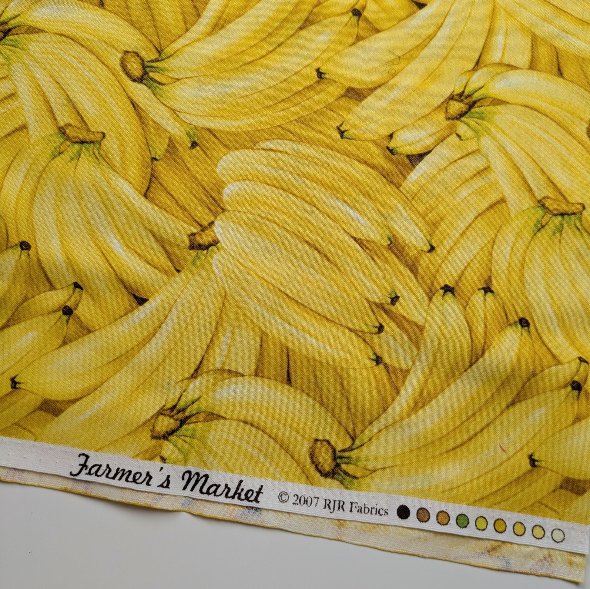 44" wide and 14" long. You probably woke up this morning thinking today was a normal day. But it's not a normal day, for now you've been enlightened by the idea of hiding some photorealistic banana fabric inside of every one of your future sewing projects. Your banana era could begin now. Will you heed the call? The call from the bananaphone?