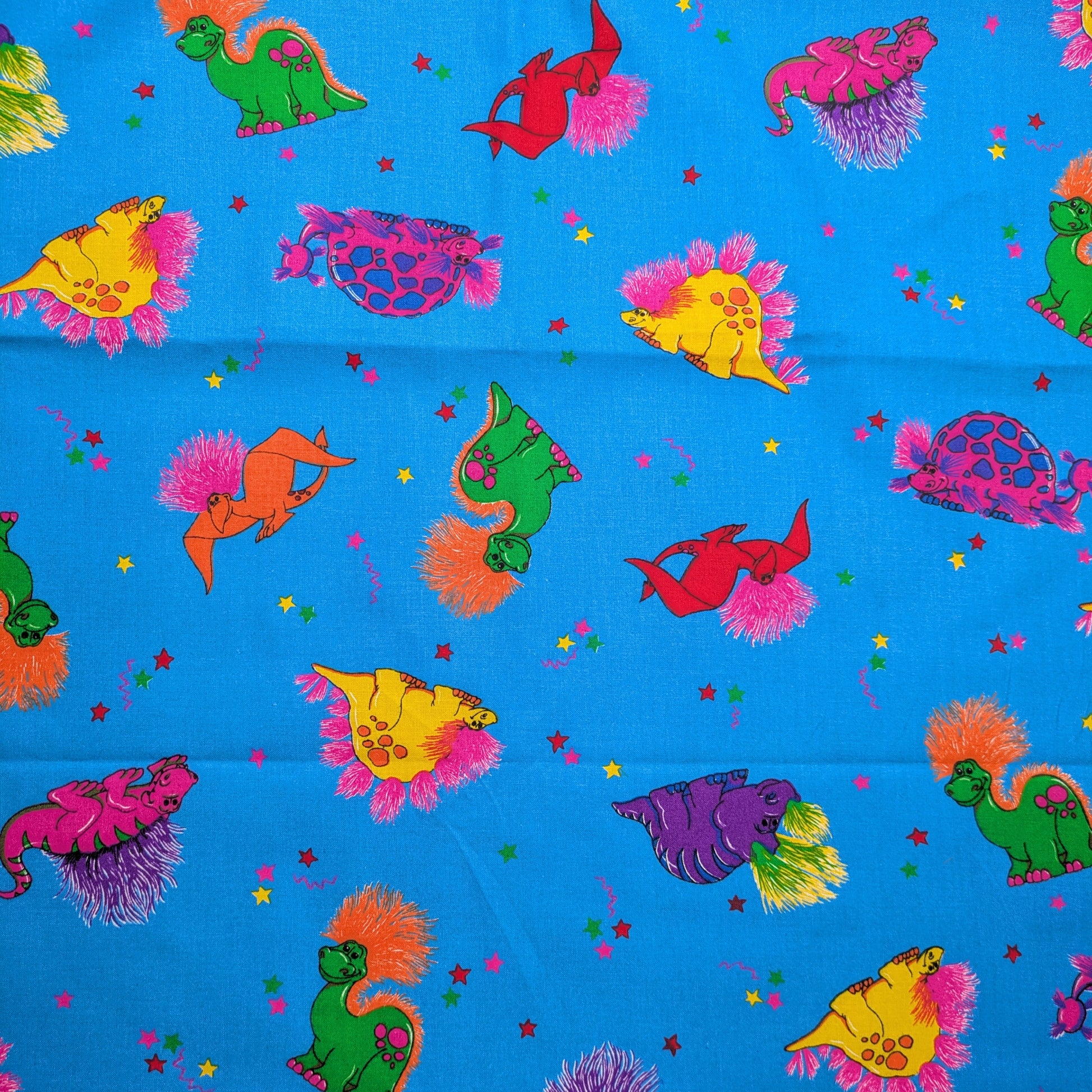 I thought this was a knockoff Trolls product, but it turns out it's legit! Dinotrolls! They're everything that kids of the 1960s and kids of every time love, evolved into one epic design. There's just 28" of this 45" wide fabric available, so it's a precious commodity, just like original Troll dolls and original dinosaurs. At 100% cotton it's not a petroleum product either, so that's nice.